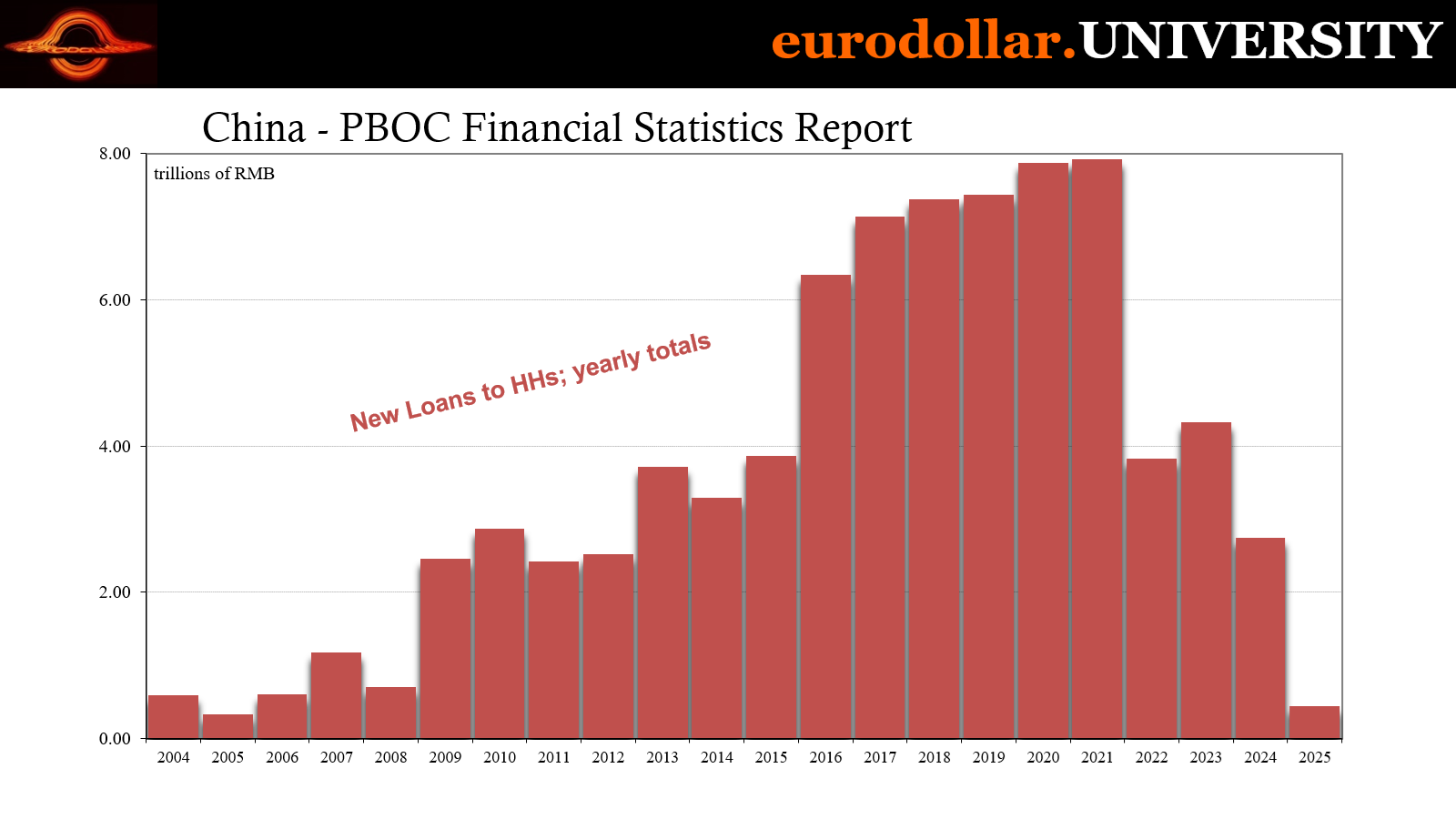 We were reminded of how much serious trouble again today with full-year 2025 tallies on banks and loan flows. The word “ugly” doesn’t do it justice. Lending to/borrowing by households utterly collapsed last year. Collapsed. Net loans went from CNY8 trillion in 2021 to practically zero in 2025.