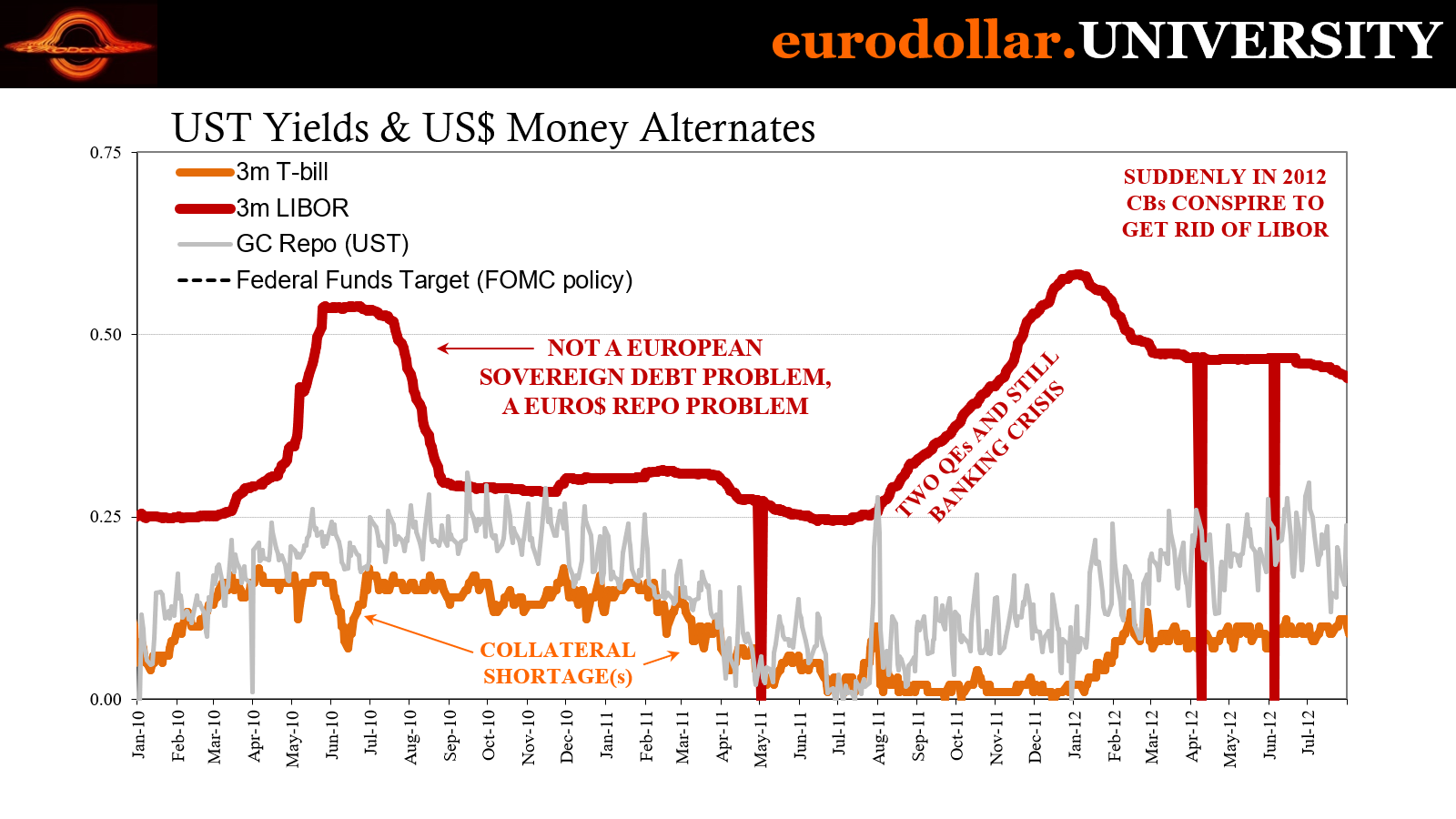 In other words, these banks had been hit by an “unexpected” collateral shortage due primarily to the haircut re-assessments made by collateralized markets (repo) on weaker sovereign credits previously stood up as pristine.