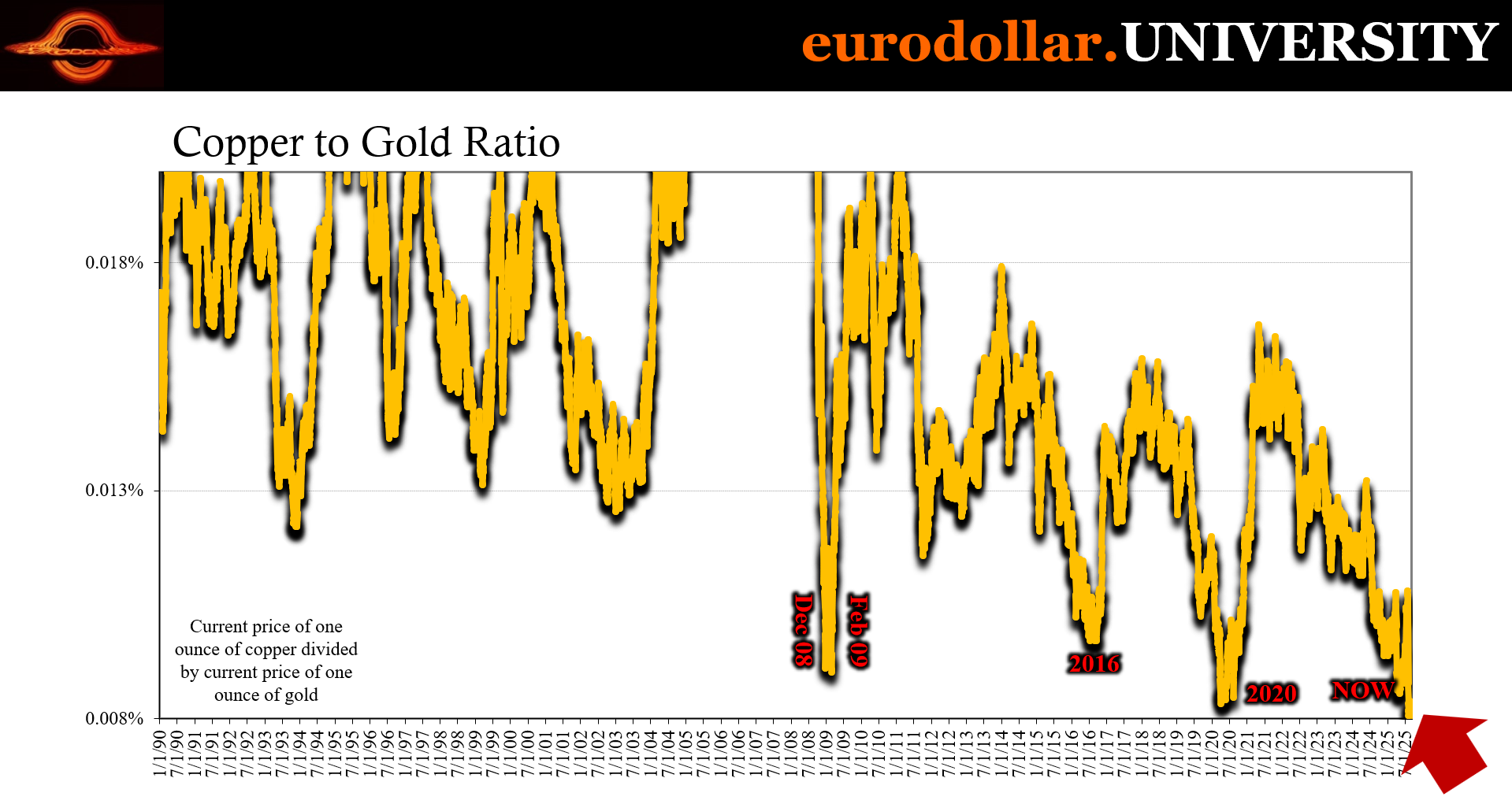 And if there was any remaining doubt, which there really shouldn’t be, again take a gander at the unambiguously deflationary depths the copper-to-gold ratio has sunk to.