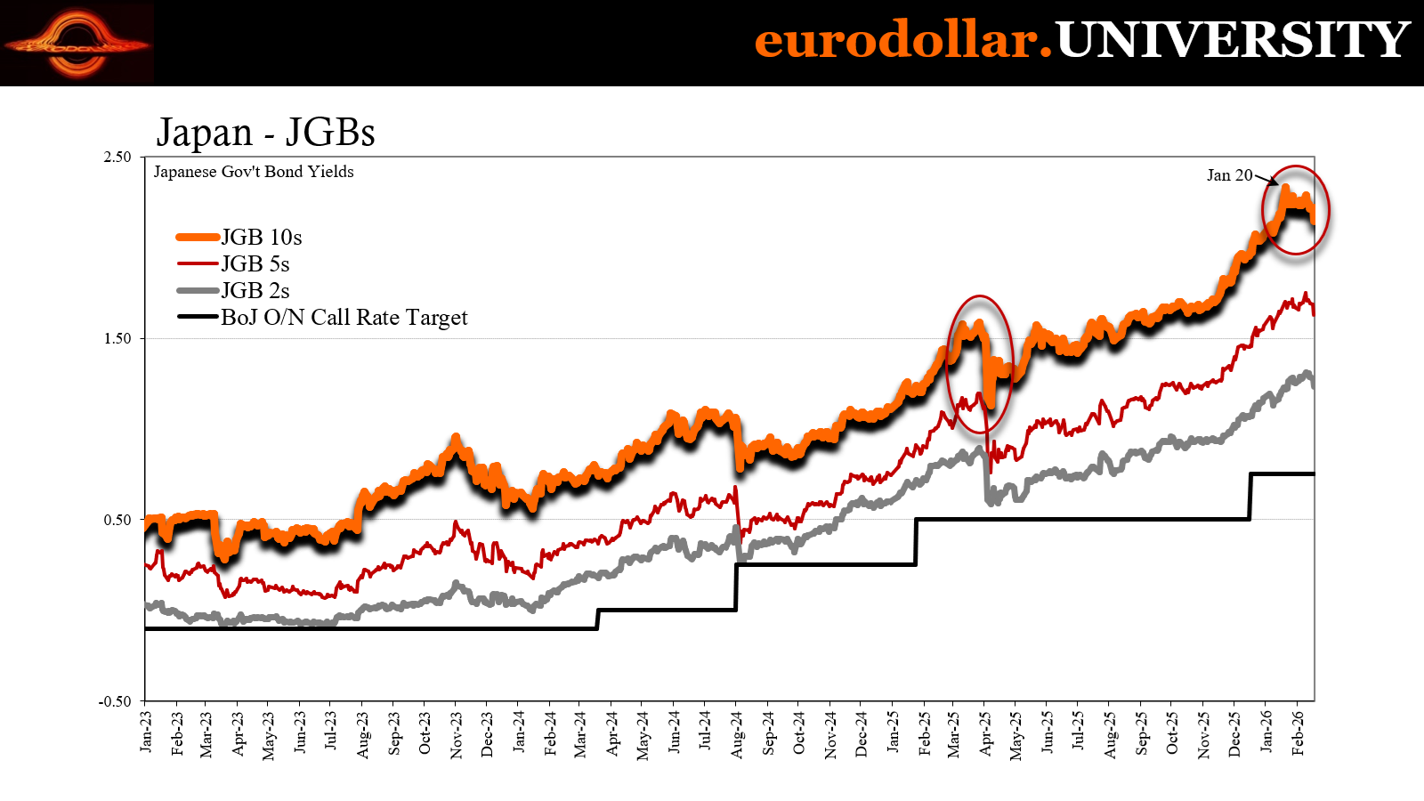 Japan like Switzerland is another critical global example coming up short on both late 2025 and so far of 2026.